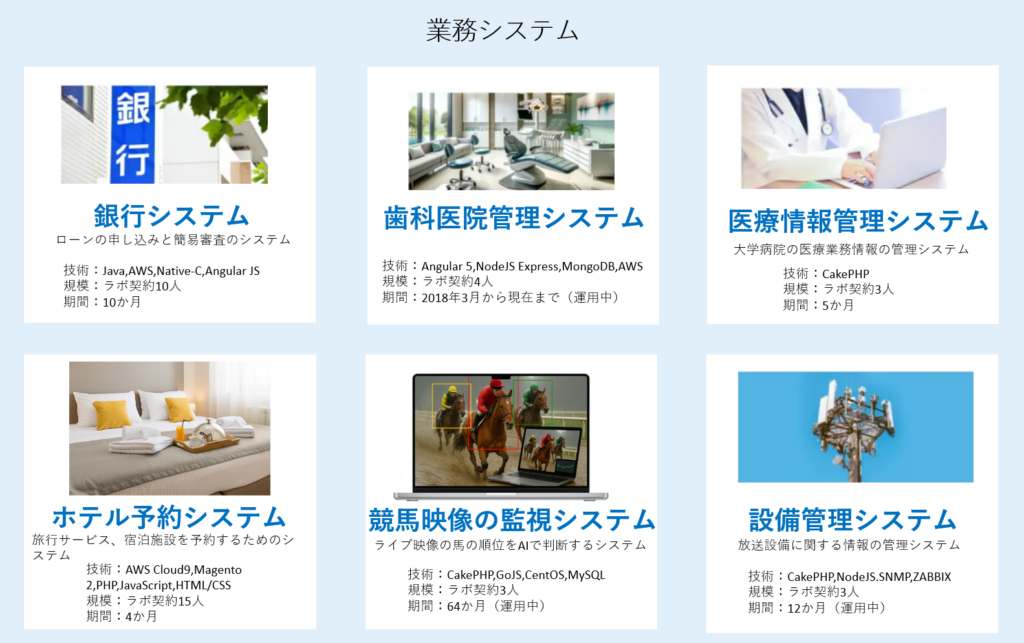 企業が過去にどのようなプロジェクトを成功させてきたか、そしてどのようなクライアントからの評価を受けているかを把握することで、自社のニーズに適したパートナーを見つけることができます。類似のプロジェクトや業界での実績があるチームは、問題解決や要件定義のスキルが高いことが期待できます。